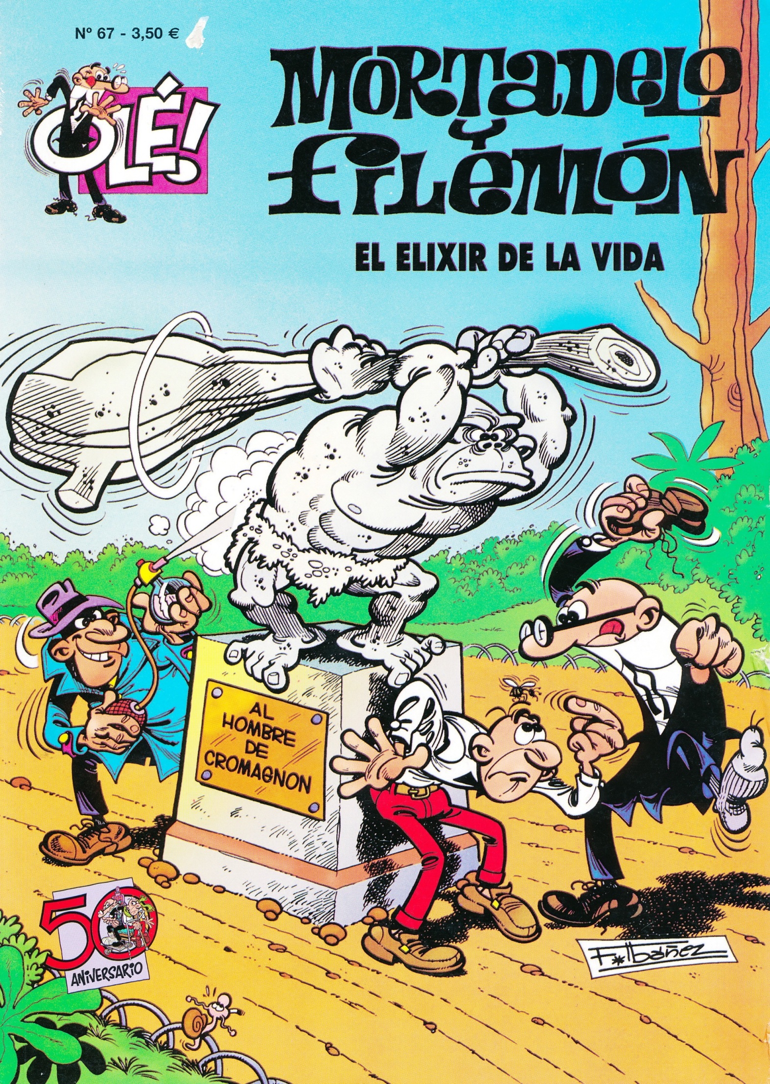 Número 67 de la colección «Olé Mortadelo», la más longeva hasta la actualidad. Los objetos están cobrando vida sobre la tierra.