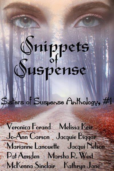 Shaken and Stirred… Spine-tingling suspense with a steamy side of romance, written by ten award winning authors. The Sisters of Suspense Anthology #1 is a collection of snippets from their favorite Romantic Suspense stories. Chilling and thrilling. It’s guaranteed to spark your interest, stir your senses, set your imagination on overdrive and introduce you to new authors you’re going to love. Snippets by: Veronica Forand, Melissa Keir, Jo-Ann Carson, Jacquie Biggar, Marian Lanouette, Jacqui Nelson, Pat Amsden, Marsha R. West, Kathryn Jane and McKenna Sinclair Award Winning Suspense