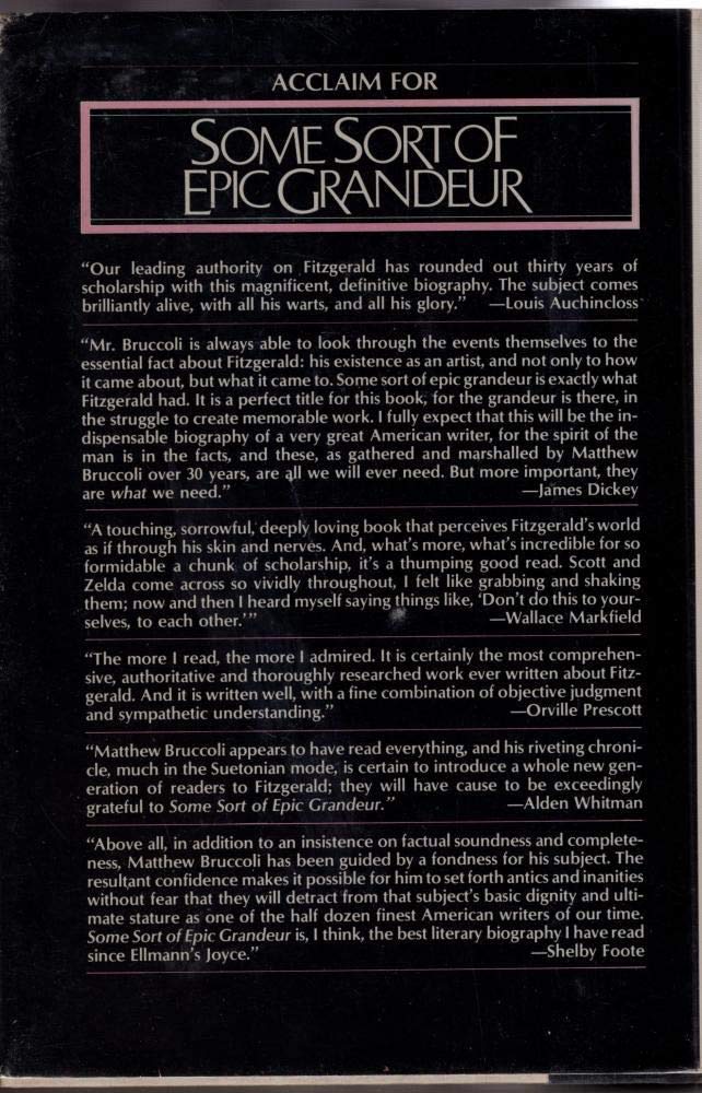 Matthew Bruccoli's gigantic biography of Fitzgerald, "Some Sort of Epic Grandeur," has for long been the most acclaimed, most proofed, and most essential biography of the legendary American writer.