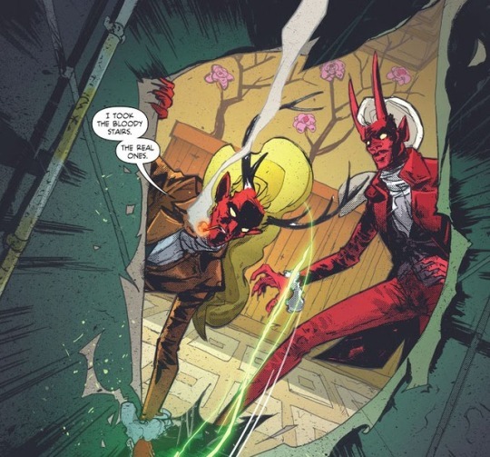 Volume two picks up three weeks after the first left off. John and Oliver are dating. Oliver is hilariously blasé about the magic thing, and John hasn't met the kids yet. Oliver's unimpressed reaction to Swamp Thing in the shower is juxtaposed to his utter horror of "is that an answering machine???" It is a delight. In non-domestic news, we find out who was behind all that background craziness from last volume: the demon Neuron, who has stolen Papa Midnite's business empire and wants to set New York City up as a fast-track to hell. Joke's on him though because New York is already hell.