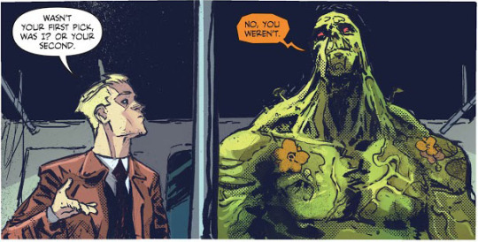 "We shouldn't have let him go so easy. We should have locked him up, or, better yet, killed him. [...] to my very great regret, I know the man. He may seem foolish and laughable, but he is a calamity. Strange powers gather around his head, breathe evil luck into his empty chest. He has no care for his place in this realm, and he doesn't respect anything but himself! Even if you say there's no kind of way, the plan is airtight and the bonds are unbreakable, John Constantine will still prove you wrong. He'll find the angle we've overlooked, because we want things. John Constantine, he doesn't want anything, but he wants it forever and all to himself." --Papa Midnite