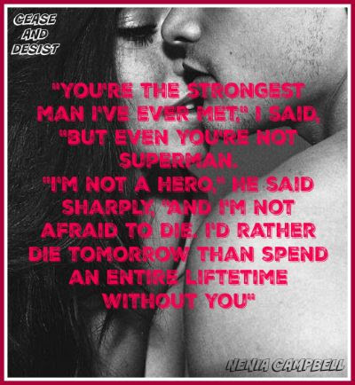 I would like to preface this review by saying that I have obsessively read every book that indie author Nenia Campbell has published. Her writing is just so consistently good, and yet for some reason I still have not written an actual review for any of her books. I really feel like I owe this to her at this point, because I want this lady to do well, and I think a lot of people out there would really enjoy her reading books. So that being said, on to Cease and Desist.