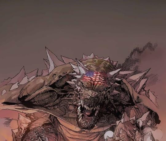 Al Ewing’s definitely a huge Pacific Rim fan because there’s a big fight scene between an AIM Jaegar robot and a SHIELD Kaiju creature called American Kaiju - he has an American flag on his chest and is obviously a metaphor for SHIELD in this story: a supposedly out-of-control monster. Real subtle, Al!