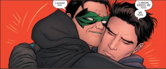 I loved everything I read of the run where Dick was Batman and Damian was Robin. They have great chemistry and I really like that Dick basically calls Damian out on being a jerk and is the cool older brother to Damian's violently protective Robin. I would gladly read more about them working together and this moment was surprisingly sweet and adorable.