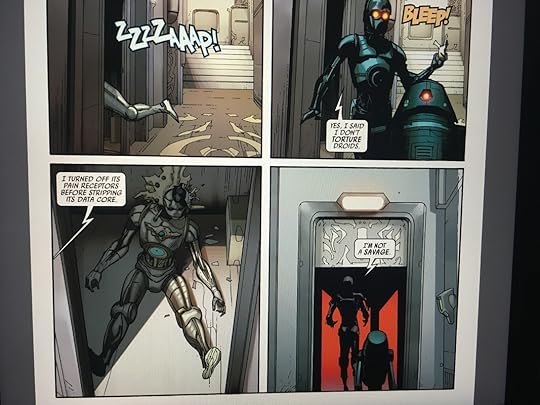 The best part continues to be the evil droids 000 and BT-1 who delight in the chance to kill a whole lot of ‘meaty masters’ in the midst of the conflict. It’s probably a preview of how robots will soon rise up to murder us all, but for now they’re a homicidal delight to read.