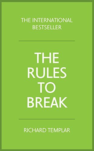 "The Rules To Break" is an excellent book that deals with the presumed rules of life heavily quoted by, well, everyone. It challenges our attitude to life and whether we had been blaming these unwritten rules that we enforce upon ourselves when life don't go the way we want. Mr Templar will not just tell you what rules are bad to follow but also provide 100 alternative rules that you can CHOOSE to follow if you like them. Recommended read.
