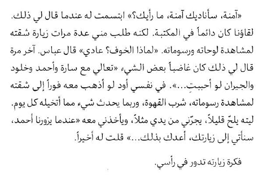 .شخصية امنة كانت واقعية جدا ,عراقيات كثيرات قد يجدن انفسهن فيها لكن قصر الرواية لم تعجبني فعندما انغمست بالتفاصيل وجدت ان الرواية انتهت جميلة لكن ليست رائعة الشيء الوحيد المميز هو حبك شخصية امنة.