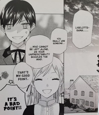 The cover this time around is a little misleading, at least to me. The cover makes Liselotte appear to be a blond-haired Tohru, but in the manga itself, she seems to be a bit older (I'm guessing early to mid-twenties), and unlike maid-of-the-year and air-headed Tohru, Liselotte is terrible at housework but seems to be more grounded in the reality of her situation, even if she's making the best of it she can.