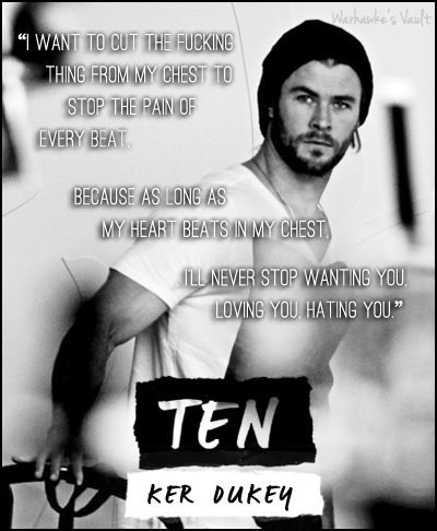“I want the pain of loving you stop stop.” He beats at his chest. “I want to cut the fucking thing from my chest to stop the pain of every beat, because as long as my heart beats in my chest, I’ll never stop wanting you, loving you, hating you.”