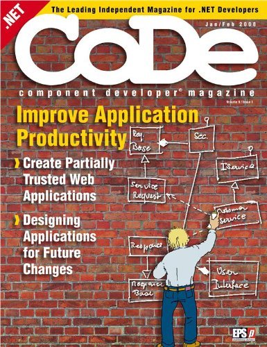 Table of *) It’s an Agile World *) MVP Use the ASP.NET MVC Framework to Write Web Apps without Viewstate or Postbacks *) Never Write an Insecure ASP.NET Application Ever Again *) Design for Extensibility *) The Baker’s 13 Tips for Querying OLAP Databases with MDX *) C# 3.0 Syntax Additions-Design Guidelines *) Building WCF Services for Deployment in Transiently Connected Networks *) CODE on the Code Camps and DevConnections! *) Heard on .NET Rocks! Don Demsak on LINQ to XML *) Ask the Doc Detective *) Visual Basic and Respect