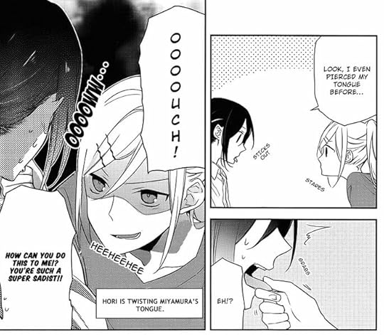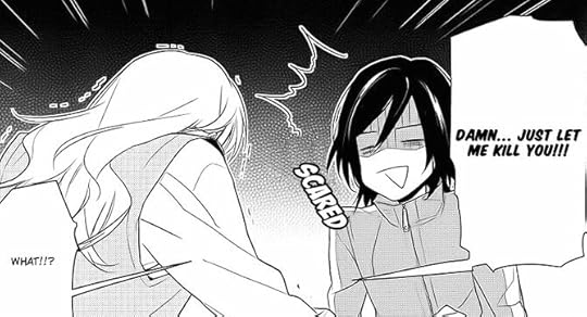 Hori-san, until you think "I don't want you here," or "I can't even stand to look at you," or "Just get lost," I'll be right here.I like how Miyamura behaves differently around Shindou than he does around his high school classmates. And I also like how the story isn't obsessively focused on romance--it's a major factor, yes, but not the only one. In the case of our leads, we're dealing with the characters' internal pain, too: Miyamura's slow recovery from being socially isolated in early adolescence (hey, I feel ya there, kid), Hori's having to be the "the strong and responsible one" when it comes to taking care of her household. She's what, seventeen? She's attending school and getting high marks, taking care of her younger sibling, cooking and cleaning. It's a lot!
