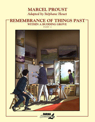 I forbindelse med min igangværende anmeldelse af Heuets første seks bind, har jeg læst dem i den rigtige rækkefølge i forhold til Prousts tekstforlæg. Det sidste af de fire Heuet-bind, der udgjorde ’Vejen til Swann’, havde været 15 år undervejs, hvilket afspejledes i en mærkbart positiv udvikling på den grafiske front, hvorfor dette bind – ’Le Nom’ – fik en begejstret anmeldelse. Nu afslutter jeg min række af anmeldelser med det, der indholdsmæssigt udgør fortsættelsen til ’Le Nom’, nemlig Heuets bearbejdning af Prousts andet dobbeltbind, ’À l’ombre’. Men ak, grundet Heuets mærkværdige omgang med begrebet rækkefølge er disse produceret helt nede i starten af århundredet, faktisk umiddelbart efter det allerførste bind i serien. Tilbage til start, altså!