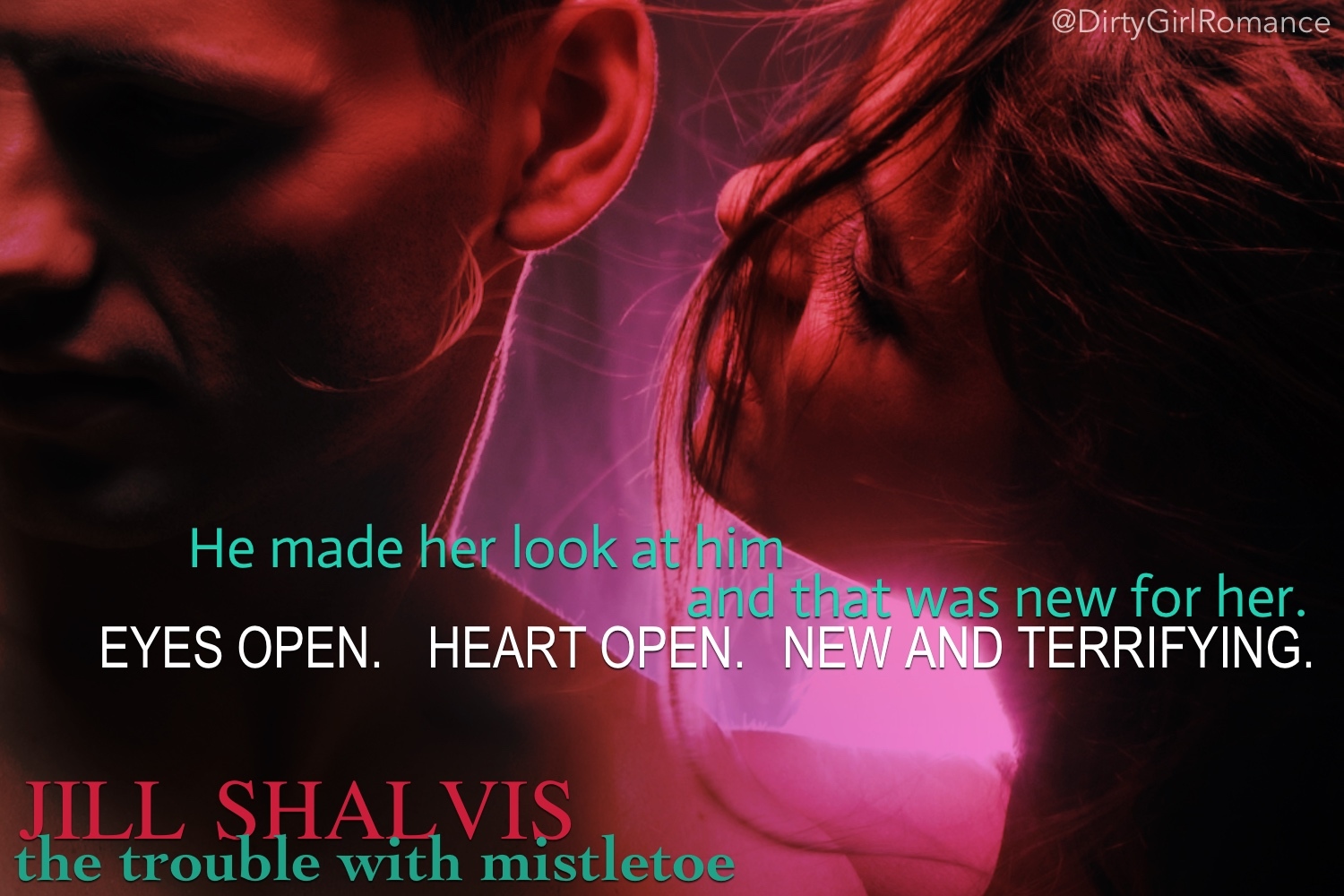 “…he wrapped his fingers around her wrist, the one still holding the sprig of mistletoe, and raised it slowly up the wall until it was above her head, held to the wall by both of them. (…) Moaning, she dropped the mistletoe and tugged her hand free to grip the front of his shirt with two fists. She was still holding tight when he lifted his head.