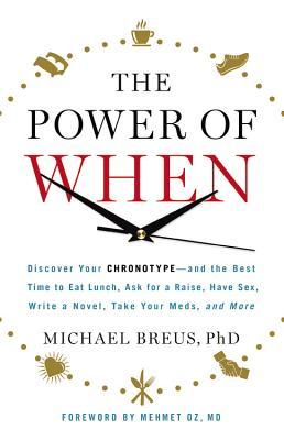 Most advice centers on what to do, or how to do it, and ignores the when of success. But exciting new research proves there is a right time to do just about everything, based on our biology and hormones. As Dr. Michael Breus proves in THE POWER OF WHEN, working with your body's inner clock for maximum health, happiness, and productivity is easy, exciting, and fun. THE POWER OF WHEN presents a groundbreaking new program for getting back in sync with your natural rhythm by making minor changes to your daily routine. After you've taken Dr. Breus's comprehensive Bio-Time Quiz to figure out your chronotype (are you a Bear, Lion, Dolphin or Wolf?), you'll find out the best time to do over 50 different activities. Featuring a foreword by Mehmet C. Oz, MD, and packed with fascinating facts, fun personality quizzes, and easy-to-follow guidelines, THE POWER OF WHEN is the ultimate "lifehack" to help you achieve your goals.
