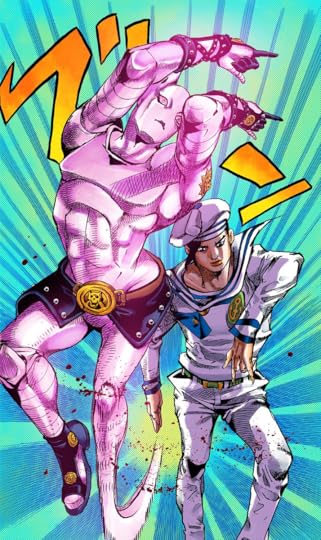 With my childish mind (to be fair, this is Jojolion I had to laugh at his first speech bubble