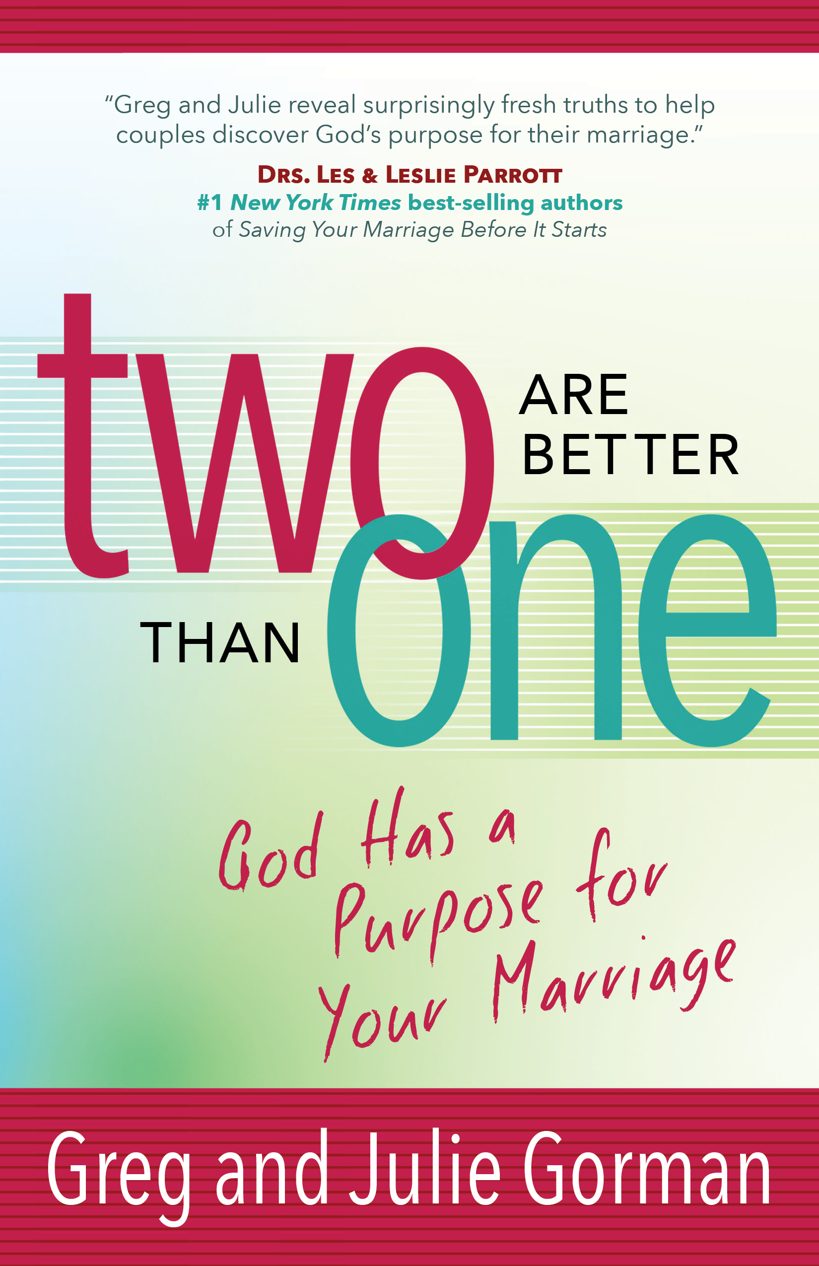 While there are shelves of marriage books, what makes TWO ARE BETTER THAN ONE, stand out from the others? Greg and Julie Gorman's book provides the insights and truth so couples can understand God's purpose for their marriage.
