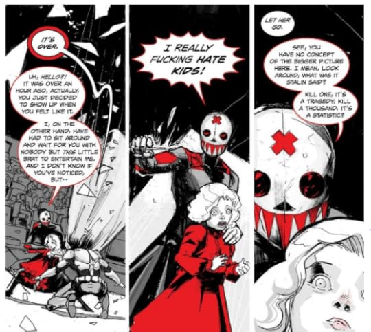 Anyway, Madder Red dies (due to spoilers) and is Clockwork Oranged into a reformed citizen by a doctor that looks oddly like DC's Joker and is surrounded by a group of surgically deformed nurses and orderlies.