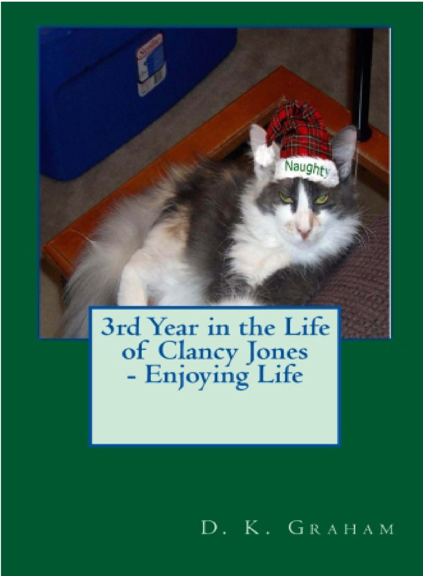 She is a special needs cat who, along with her sister Tinkerbelle, was found in the back yard of her adoptive parents, in the middle of a big rainstorm. Her natural mother was a feral cat. She's deaf and displays a number of eccentric behavioral issues. She's hilarious to watch in action, and oblivious to the destruction she leaves in her wake. Readers of all ages will enjoy this photographic romp through Clancy's 3rd year of life!