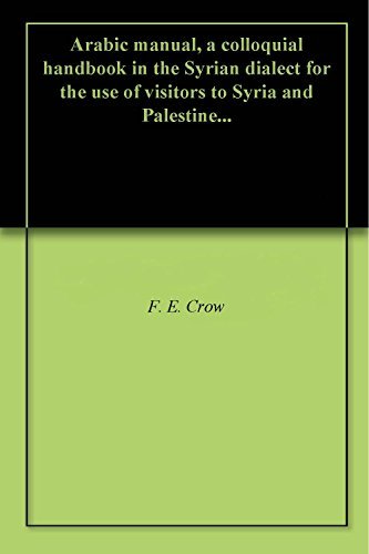 Arabic manual, a colloquial handbook in the Syrian dialect for the use of visitors to Syria and Palestine, containing a simplified grammar, a comprehensive English and Arabic vocabulary and dialogue, the whole in English characters carefully trasliterated, the pronunciation being fully indicated