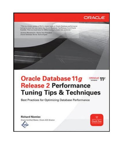 About the Oracle Database 11g Release 2 Performance Tuning Tips & Techniques Oracle Database 11g Release 2 Performance Tuning Tips & Techniques details the latest monitoring, troubleshooting, and optimization methods. Find out how to find and fix bottlenecks, configure storage devices, execute effective queries, and develop bug-free SQL and PL/SQL code. Testing, reporting, and security enhancements are also covered in this Oracle Press guide. Properly index and partition Oracle Database 11g Release 2 Work with Oracle Exadata and Oracle Exalogic Elastic Cloud Efficiently manage disk drives, RAID arrays, and memory Tune queries with Oracle SQL hints and the TRACE utility Distribute workload using Oracle Real Application Testing Contents Chapter 1. Introduction to 11g R1 and R2 New Features (DBA and Developer) Chapter 2. Basic Index Principles (Beginner Developer and Beginner DBA) Chapter 3. Disk Implementation Methodology and ASM (DBA) Chapter 4. Tuning the Database with Initialization Parameters (DBA) Chapter 5. Enterprise Manager and Grid Control (DBA and Developer) Chapter 6. Using EXPLAIN and SQL PLAN MANAGEMENT (Developer and DBA) Chapter 7. Basic Hint Syntax (Developer and DBA) Chapter 8. Query Developer and Beginner DBA Chapter 9. Table Joins and Other Advanced Tuning (Advanced DBA and Developer) Chapter 10. Using PL/SQL to Enhance Performance (Developer and DBA) Chapter 11. Exadata, Tuning RAC, and Using Parallel Features Chapter 12. The V Views (Developer and DBA) Chapter 13. The X Tables (Advanced DBA) Chapter 14. Using Statspack and the AWR Report to Tune Waits, Latches, and Mutexes Chapter 15. Performing a Quick System Review (DBA) Chapter 16. Monitor the System Using Unix Utilities (DBA) Appendix A. Key Initialization Parameters (DBA) Appendix B. The V Views (DBA and Developer) Appendix C. The X Tables (DBA) Index About the Richard Niemiec Richard Niemiec is an Oracle Ace Director and one of only six originally honored Oracle Cer