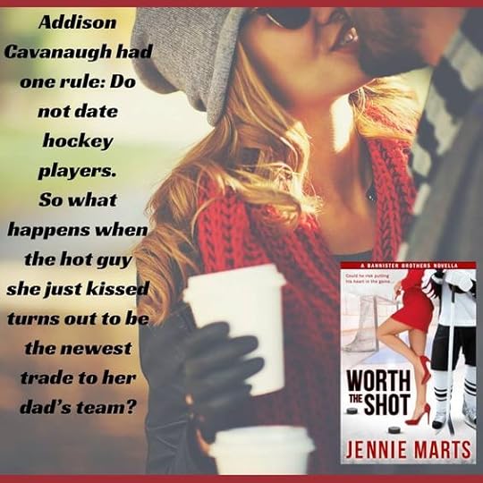 WORTH THE SHOT is the first of Jennie's books that I've read and a super quick, super smokin' read! If you need something to keep you warm during this oddly cold Spring weather, go grab WORTH THE SHOT right now. It's worth the buy and I almost wish I would have read it during a snowstorm earlier this year!