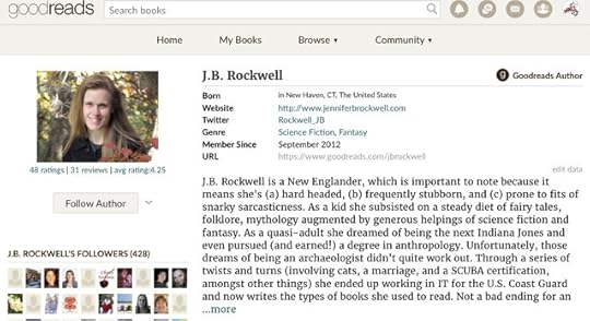 J.B. Rockwell is a New Englander, which is important to note because it means she's (a) hard headed, (b) frequently stubborn, and (c) prone to fits of snarky sarcasticness. As a kid she subsisted on a steady diet of fairy tales, folklore, mythology augmented by generous helpings of science fiction and fantasy. As a quasi-adult she dreamed of being the next Indiana Jones and even pursued (and earned!) a degree in anthropology. Unfortunately, those dreams of being an archaeologist didn't quite work out. Through a series of twists and turns (involving cats, a marriage, and a SCUBA certification, amongst other things) she ended up working in IT for the U.S. Coast Guard and now writes the types of books she used to read. Not a bad ending for an Indiana Jones wannabe...