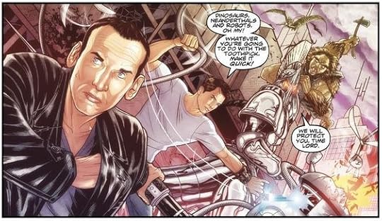 The most important thing to me when it comes to people writing the Nine, Rose, and Jack era is that the writers remember the order of the Doctor's priorities. Rose is always the most important being in the universe, then anyone in Rose's immediate vicinity (since their safety effects hers), and then the rest of the universe. As long as that hierarchy of priorities is adhered to, the writers can do very little wrong in my estimation. And these writers remembered that perfectly, so I enjoyed every panel of this first entry.