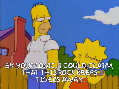 in this mystery that is not written by typical mystery ghostwriter Ellen Miles and is instead written by the ghostwriter I’m just so damned sick of, Peter Lerangis, a family that moved away from stoneybrook years ago, the hatts, are planning to move back. they have to buy a house and fix up the long-abandoned lighthouse they still own (wait is stoneybrook a coastal town? how have they never mentioned this before?), and while working on that they stay with the kishis, who clearly don’t have room for a 5-person family to stay with them for weeks, but oh well. the hatts are sort of personae non grata in stoneybrook because of a mystery that happened surrounding the lighthouse before they moved. they’re also personae non grata to claudia, because their moving in means she has to share a room with janine, and because the hatt kids are kind of jerks. the hatts keep getting threatening notes at the kishis’ as they fix up the lighthouse, and claudia discovers that the lighthouse’s neighbor mr. langley really hates them and blames them for his son having died at the lighthouse years ago. he had gotten locked inside and jumped out the window because he had claustrophobia. he hit some rocks on the way down and died of head trauma and overexposure. claudia and the other bsc members notice mysterious sounds in the lighthouse, and eventually they find a note with a gurgile on it that says "if you survive the night you’ll be one of us." the bsc do some sleuthing and discover that back when the hatts used to live in stoneybrook, there was a gang that used the gurgile (/gargoyle if you want to be particular about it) as their logo, and they forced potential members to stay in the locked lighthouse overnight to prove they’re gutsy enough. one of the guys who was in the gang way back when is upset that the hatts are in town because he thinks they’ll uncover that it’s basically his fault the langley kid died, so he’s been sending them the threatening notes. a minor subplot is that janine and her boyfriend jerry are on the outs because janine is more interested in steve hatt, who is popular and makes janine vaguely popular by proxy. but in the end janine goes back to jerry when she realizes steve has a wandering eye. a more major subplot is that the veehoff comet is coming to town and the bsc is hosting a comet party. all the bsc kids subscribe to old-timey superstitious theories about how the comet is an omen (straight out of the tell the bees exhibit at the museum of jurassic technology). kristy uses lisa simpson logic to convince them to stop freaking out. she says that she notices that when she eats waffles it gets dark at night and that when she opens her locker with her right hand on fridays, they have no school the next day: the kids of course realize then that they’re silly and that correlation does not mean causation, because the kids are smarter than homer simpson: