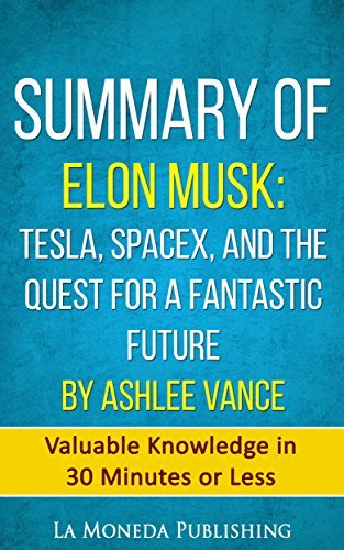 Summary and Analysis of Ashlee Vance's "Elon Tesla, SpaceX, and the Quest for a Fantastic Future".Summary of the ideas from Vance’s book “Elon Tesla, SpaceX, and the Quest for a Fantastic Future". This short Kindle work discusses the extraordinary life of one of Silicon Valley’s most exciting, unpredictable, and ambitious entrepreneurs, Elon Musk.Musk is the renowned entrepreneur and innovator behind SpaceX, Tesla, and SolarCity, and PayPal.To learn more, read " Elon Tesla, SpaceX, and the Quest for a Fantastic Future".