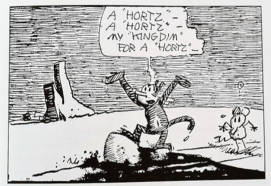 I'd like to give this very satisfying work five stars, but I can't quite, for two reasons: (1) next to nothing is said about the third member of the Krazy-Ignatz structure, the aggressive bulldog "Offisa Pupp." Even as a stock figure, the Pupp's place in this comic cannot be disputed. Also, (2) I thought it was a shame that this book contains no reprints from allied or competing cartoonists -- and "Krazy" her/himself appears only in black and white, not the desert tints Herriman lovingly applied to his enduring Sunday panels.