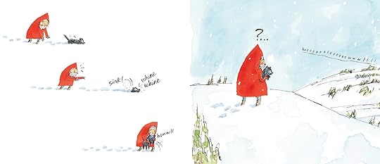 I'm reading Wolf in the Snow for the first time on February 12, 2018, the day it was announced to have won the Caldecott Medal as the preeminent American picture book of 2017. I'd never read any of Matthew Cordell's work, and that's what I like about the Caldecott awards: being introduced to authors and illustrators I might never come across on my own, who occasionally become favorites. We're treated to an elaborate show of Matthew Cordell's art in Wolf in the Snow, a nearly wordless story of two youngsters stranded outdoors during a snowstorm. Lives hang in the balance as a girl dressed in red and a lost wolf club cross paths in this frozen wasteland.