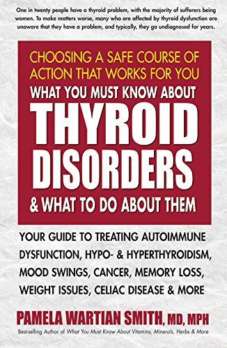 It is estimated that one in twenty people have a thyroid problem, with the majority of sufferers being women. To make matters worse, many who are affected by thyroid dysfunction are unaware that they have a problem, and typically, they go undiagnosed for years. In the meantime, they experience a variety of symptoms, including fatigue and weight gain or loss, forgetfulness, sleepless nights, irritability, and more. But it doesn’t have to be that way. Written by best-selling author Dr. Pamela Wartian Smith, What You Must Know About Thyroid Disorders and What to Do About Them enables readers to identify common thyroid problems and seek the treatment that they need. Written in easy-to-understand language, the book begins by explaining how important the thyroid is in regulating the body’s metabolism, which, in turn, plays a vital role in controlling the functions of the heart, brain, liver, lungs, kidneys, and intestines. It then goes on to discuss the most common thyroidrelated disorders and symptoms, including hypothyroidism, hyperthyroidism, autoimmune dysfunction, celiac disease, thyroid cancer, mood swings, and excess weight gain. Each discussion starts with a simple self-quiz that helps readers determine if they may be suffering from the problem. Dr. Smith then explains the disorder’s cause and common symptoms; diagnostic tests; and both conventional and alternative treatment approaches. Included is a handy resource section that points the way to further information and support. So many health problems are related to thyroid dysfunction, and so many individuals suffer needlessly—even though help is available. What You Must Know About Thyroid Disorders allows readers to take the first important step on the road to diagnosis, effective treatment, and wellness.