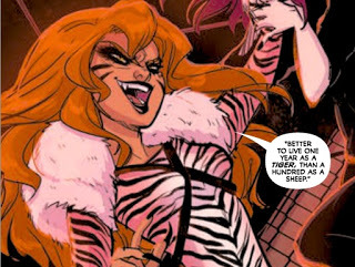 Hello? Did she just tackle a tiger? Come on, Babs! Don't you have a utility belt with some tranquilizers or something?! I don't care how hard you hit it, that tiger is going to tuck, roll, & then take a huge chunk out of your head. And most people need their entire head to live a full life, so...