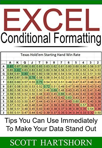 Conditional formatting is very useful for many different functions. You can use it to spot trends in data, make outliers visible, or make intuitive tables. Conditional formatting allows you do to all the formats that you would want to do if you could manually go through and examine all your data, but that you typically don’t have time for. This book walks you through how to set up different types of conditional formatting in Excel, including applying it to a full table of numbers, or just targeting specific cells.