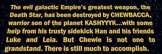 A short and sloppy adventure with a lot of Wookie action and explosions. -------------------------- Wait, what?! Did Chewie write this story?