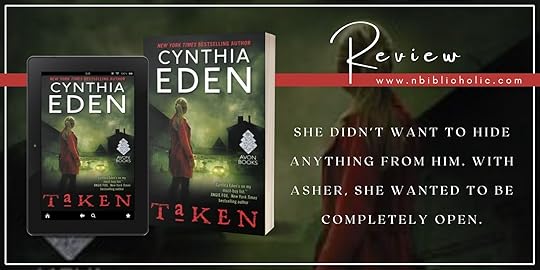Cynthia Eden is one of my favorite romantic suspense authors and TAKEN is another great addition to the "Lost" series. The story is dark and intense and it grabs your attention with a kick-ass heroine and the broken hero who believes in her. Bailey is the only survivor of a serial killer and suffers from PTSD. One of her main problems is that she can't get anyone to believe that there was another woman there the night she was rescued. Not her therapist and not law enforcement. Knowing that she will never move forward knowing that she had helped the other woman escape that night, she takes matters into her own hands and goes to the LOST organization for help. Asher is assigned to the case and from the start, he feels that Bailey is being truthful. He has some baggage that he deals with and feels a kindred spirit with her. The story takes off after Asher comes to town and that worries someone. Soon, Bailey's life is in danger again, but this time she has someone who believes. When Asher sometimes wants to investigate on his own, Bailey lets him know that she is no hothouse flower and she going to be part of the investigation. She needs to find that woman especially since she sometimes doubts her own sanity. Sparks fly between them and as they spend more time together, they help each other heal. I thought the story was exciting and there were lots of twists and turns. You had no idea if the killer was still around or if he was a copycat. I had a hard time trying to figure out who the bad guy was and I was glad that law enforcement began to take Bailey seriously, especially since her life was still in danger. I also cared for Asher and Bailey and was touched by how together they found the person who soothed and restored their once broken souls. I love this series and look forward to another. What an intense read!