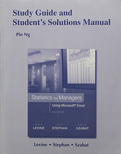 Study Guide and Student Solutions Manual Statistics for Managers Using Microsoft Excel