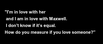 “I’m in love with her and I’m in love with Maxwell. I don’t know if it’s equal. How do you measure if you love someone? If they were both hanging on a cliff, and I could only choose one, I‘d join them on the cliff and hope we go together. I can’t divide myself from them.”
