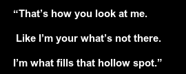 “You fill all my hollow spots. You’re my what’s missing…”