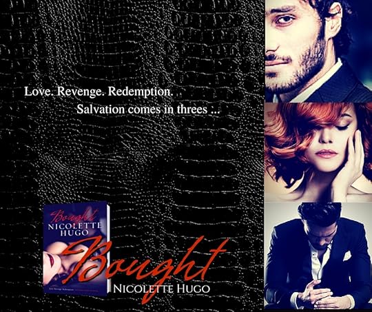 Nicolette Hugo’s Unchained Vice series continues with Bought. I’ve loved the first two installments and eagerly anticipated the third. While they are loosely connected, each really is a standalone that can be enjoyed fully without prior knowledge of previous characters or events. Ten months ago, Scarlet Bailey’s life changed dramatically when she was kidnapped and held by a cartel looking to exploit her husband Killian’s shipping business. She came through anything but unscathed….but luckily, alive. Killian hasn’t been able to forgive himself for endangering his beloved wife. He simply cannot allow himself to take pleasure from her until his revenge is complete. Scarlet loves her husband deeply, but feels the rejection keenly. She needs to feel, to hurt…and she’s discovered solace in Dom for hire, Jerricho Black. Though theirs has always been an open sexual relationship, Killian feels a distinct discomfort with his wife’s choice of lover. He decides, however, to hire Killian for forty days to serve as her Dom and live in their home. Jerricho has secrets as well and needs the paycheck desperately. He vows to keep this job impersonal, but it’s next to impossible when Scarlet touches something deep inside him. He knows walking away from this relationship might be the hardest thing he’s ever had to do.