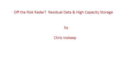 Have the risks of data compromise due to data scavenging been either forgotten or accepted? Are the risks off the enterprise’s risk radar? The amount of sensitive material that can accumulate on a laptop's hard drive is chilling. Theft or loss of that laptop puts all that data at risk and that's just the tip of the iceberg.