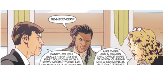 I loved that Mr. Vaughan let us know what he thinks about craps like partnerships of lgbt or solve-mechanism of such "problems" in the world of politics. I loved it how he makes that. The conversations are genial good and you can understand even who says what, why.