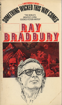 The boys ran. The train curved away, gonging it’s under-sea funeral bell, sunk, rusted, green-mossed, tolling, tolling. Then the engine whistle blew a great steam whiff and Will broke out in pearls of ice.