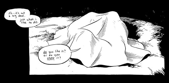 Definitely haunting, but also pretty hard to follow. The illustrations were incredible at times, and sort of off-putting at others. Made me feel some things though.