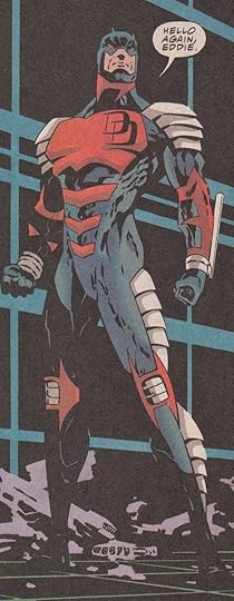 Não dá pra defender o Demolidor de Armadura. Não dá. É horrível. Começa com uma história em que o Demolidor apanha bastante e resolve fazer uma armadura; enquanto isso um monte de gente aleatória procura um frasco perdido no metrô de Nova Iorque que é o único restante de um vírus telepático feito pela Shield nos anos 60, cada aleatório tem um motivo: - Traficantes que querem melhorar a heroína que eles vendem; - Tentáculo para unir a alma da Elektra no corpo de outra mina parecida com a Elektra; - John Garret, o ciborque da Elektra Vive que pensa que é o presidente e é controlado pelo Tentáculo; - Morbius, o vampiro vivo, que quer se curar da fome por sangue; - Hellspawn, um demônio-golem feito com sangue do Matt Murdock (?) por um líder vodu da Lousianna, quer o vírus para virar um demônio de verdade; - Shang Chi e Silver Sable, não sei porquê; - Elektra careca; - Venom porque era o personagem da moda e tinha que aparecer em tudo que é lugar. No final, com a identidade do Matt Murdock saindo no jornal (o Bendis não é tão original assim), o Murdockão tem uma ideia "genial", ele usa o vírus no corpo do Hellspawn que vira um Murdock com chifres e finge que o Murdock morreu e assume a identidade de Jack Batlin, um picareta social. E aí? Como tá pra vocês? Bom, na próxima história - A Árvore do Conhecimento -, Demolidor, Capitão América, Gambit e o Punho de Ferro lutam contra terroristas digitais sob o comando da Nova Hidra do Barão Strucker. O que já não andava bem, fica ainda pior. Os noventa não foram fáceis para ninguém, mas, putaqueopariu, Murdock, putaqueopariu... Não dá pra defender o Demolidor de armadura. Não dá.