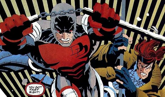 Hey, it’s an X-Man on the cover of a Daredevil book (and a crappy French/Cajun-accented X-Men to boot)! 90’s X-Men -> $$$$ -> head-scratching two page appearance. I guess Psylocke was shopping or had a waxing appointment.