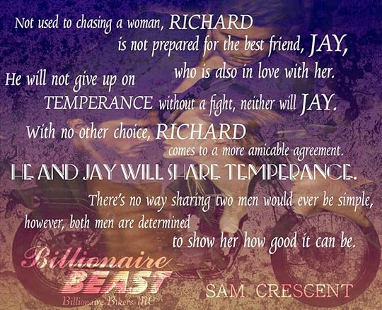 Richard ‘’Beast’’ Bruce has wanted his PA, Temperance for a long time, but he has a no sleeping with employees rule. But it isn’t long before he is giving in to rule, and having his way with her on his desk – Holy Hotness! Richard is determined to make Temperance his, but what he doesn’t count on is, Jay, Temperance’s best friend being in love with her. Jay is also determined to fight for Temperance. Richard and Jay soon give in to their fantasies and suggest a ménage style relationship. But with the danger happening around the billionaire bikers, will Temperance, Jay and Richard be safe? Will they get their happily ever after?