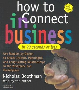 Whether interviewing, selling, networking, or leading a team, brainstorming with the boss or delivering a presentation, success in business depends on connecting with other people. Nicholas Boothman, the best-selling author who consults with Fortune 500 companies, now brings his system of forging instant relationships to the world of business. Beginning with the simplest of tools (face, body, attitude, and voice) he shows how to make a dazzling first impression. And then, for when those first 90 seconds are up, how to master the people-to-people skills that are essential to self-confident, effective, ongoing communication.