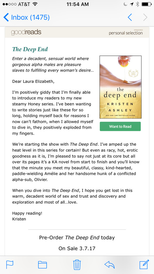 Gripping and seductive, The Deep End is the first book in a sensational new series from bestselling author Kristen Ashley.