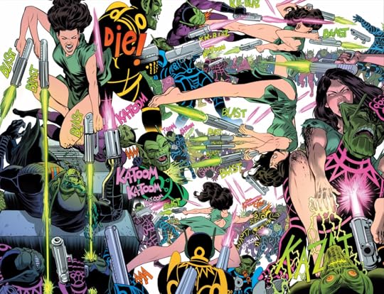 I'm absolutely in love with this run. Anyone who knows me knows that Fraction and Aja's Hawkeye is one of my favorite comics of all time, and this feels like a proper spiritual sequel. And that is mostly thanks to Javier Rodriguez's incredible art. His layouts are amazing! So dynamic, so well paced. And not only is his pencil work amazing, but so is his coloring (and Rachelle Rosenberg fills his shoes perfectly from the 3rd issue on). Of course, this wouldn't be possible without a really strong script from Dennis Hopeless, who is quickly rising to become a favorite of mine (check out his Avengers Arena/Undercover run). Hopeless perfectly balances a heartfelt story about becoming a mom with street-level vigilantism and wacky space shenanigans, all while giving Jessica Drew the best voice since Bendis. A new voice--a more grounded voice that feels fresh while still honoring everything that makes Jessica Drew who she is.